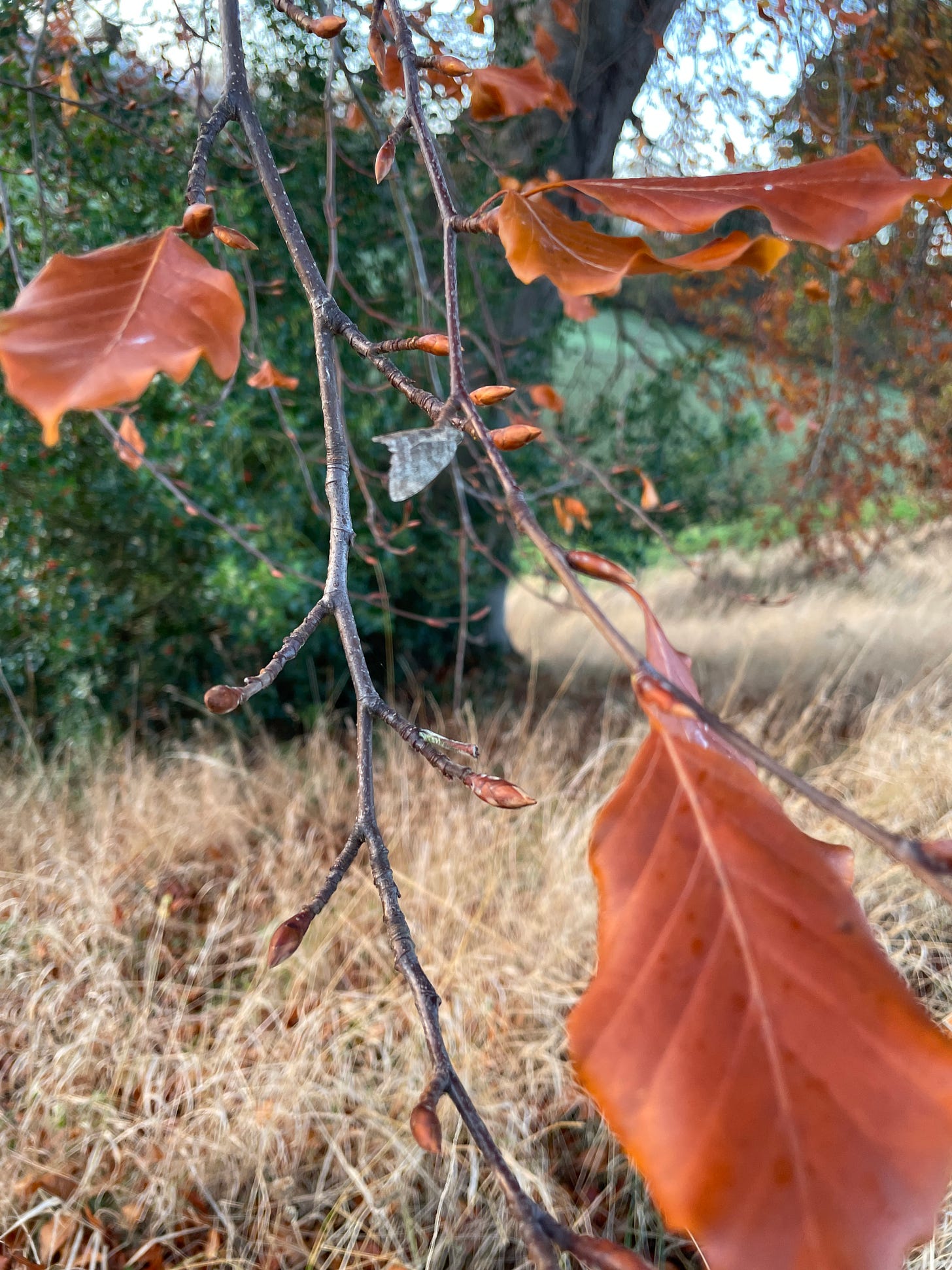 The moth image came from somewhere deep in my memory - the idea of a soul ( if you go in for such notions) as a moth or butterfly is nothing new, but surfaces in my thoughts from time to time, and very much did so the day after we buried Vesper-who-will-be-Tree. I took myself out for a walk and weep howl and met a moth, hovering at eye height, on a freezing cold morning when no sensible moth would normally venture forth.