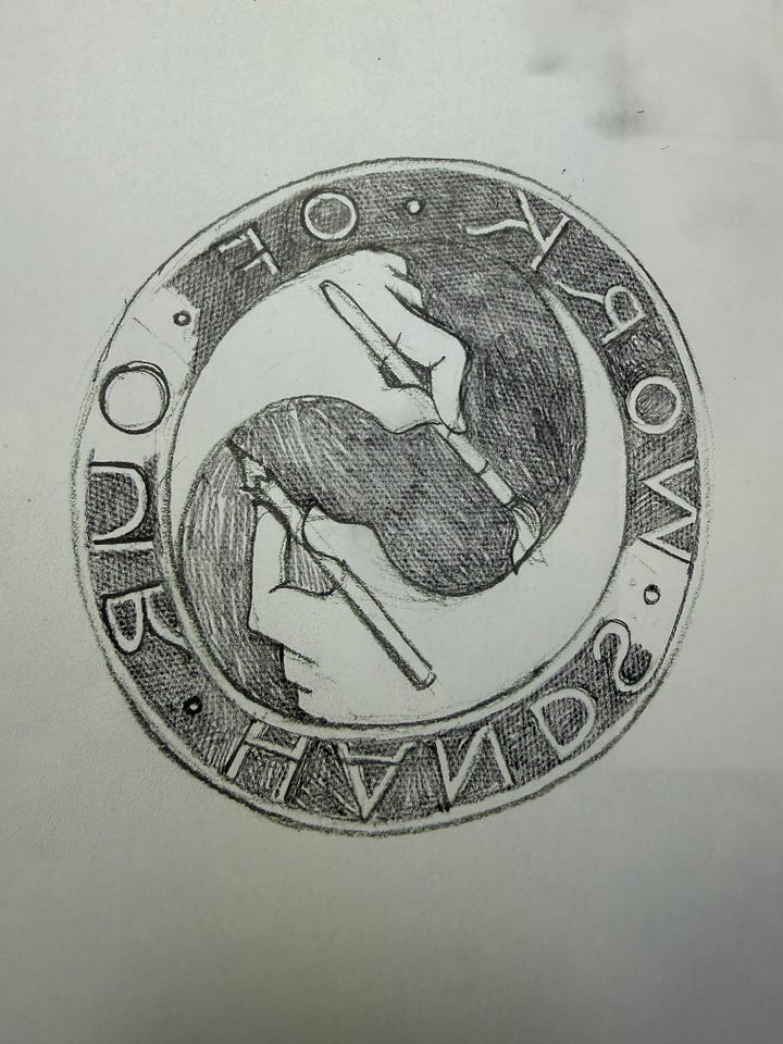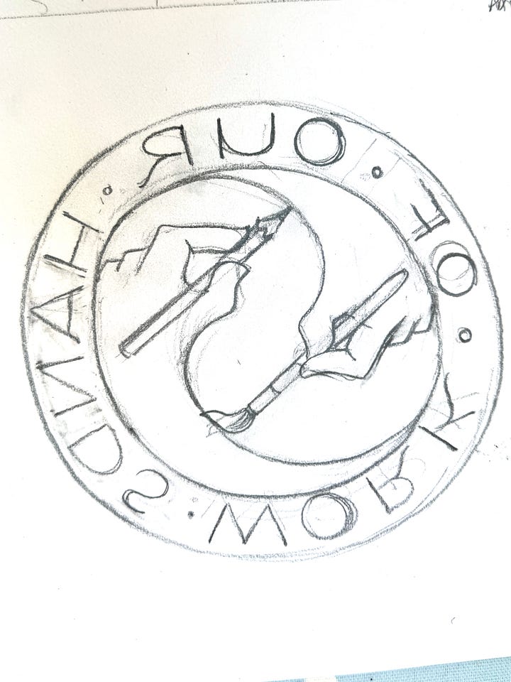 The idea is to carve it, print it, photograph it and sling it on here and also my website1 so that if you’d like to use it to point out the fact that you too have handmade your artwork, composition, artefact, or unspecified creative endeavour without the use of artificial intelligence. Although the last word in that much-used couplet is under review. Is it intelligent? I have no idea, all I know is that I do not want it to be part of my creative process. I’d love if it would do the bureaucratic grunt work and thus free me up to paint and draw and make art, but so far, I’ve managed to resist the siren-song of letting a bot loose in my affairs.