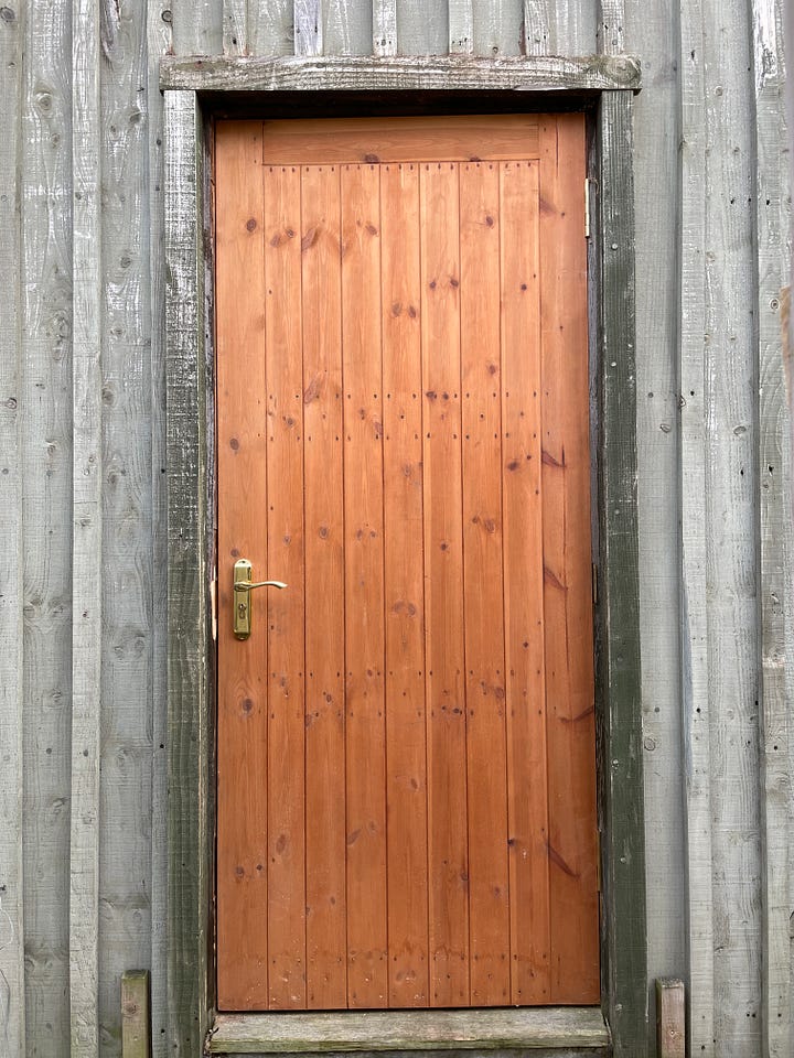 The new door closes like the farm gate closed in Babe. Remember? Whoooshhhhhhh, click. The handle is kind to my hands. The acoustics inside my studio are quieter, denser. It feels like a refuge from the world outside.