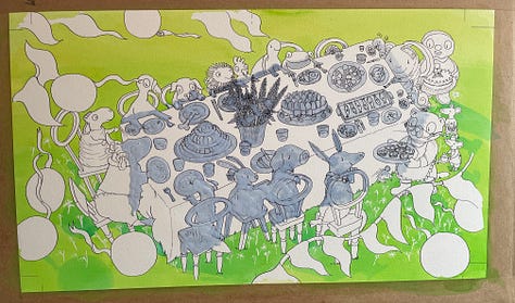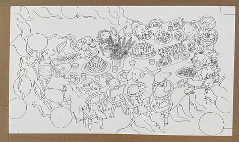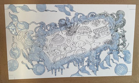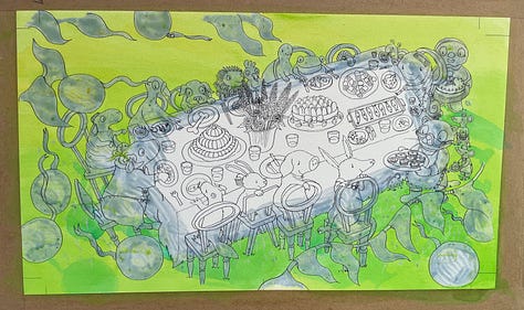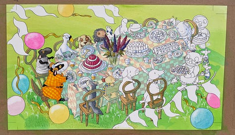 As you may recall if you’ve been with me for the past three and a half months, I’m coming to the end of a deadline for a picture book which has necessitated working every single day including all weekends since the start of October. With one week off for Christmas. I’m beyond tired. I’m punch-drunk. I’m an illustration zombie, digging deep to find happy colour combinations, skilful washes, intricate details and hang onto the absolute joy of painting under the pressure of time and - let’s not beat about the bush here - money.
