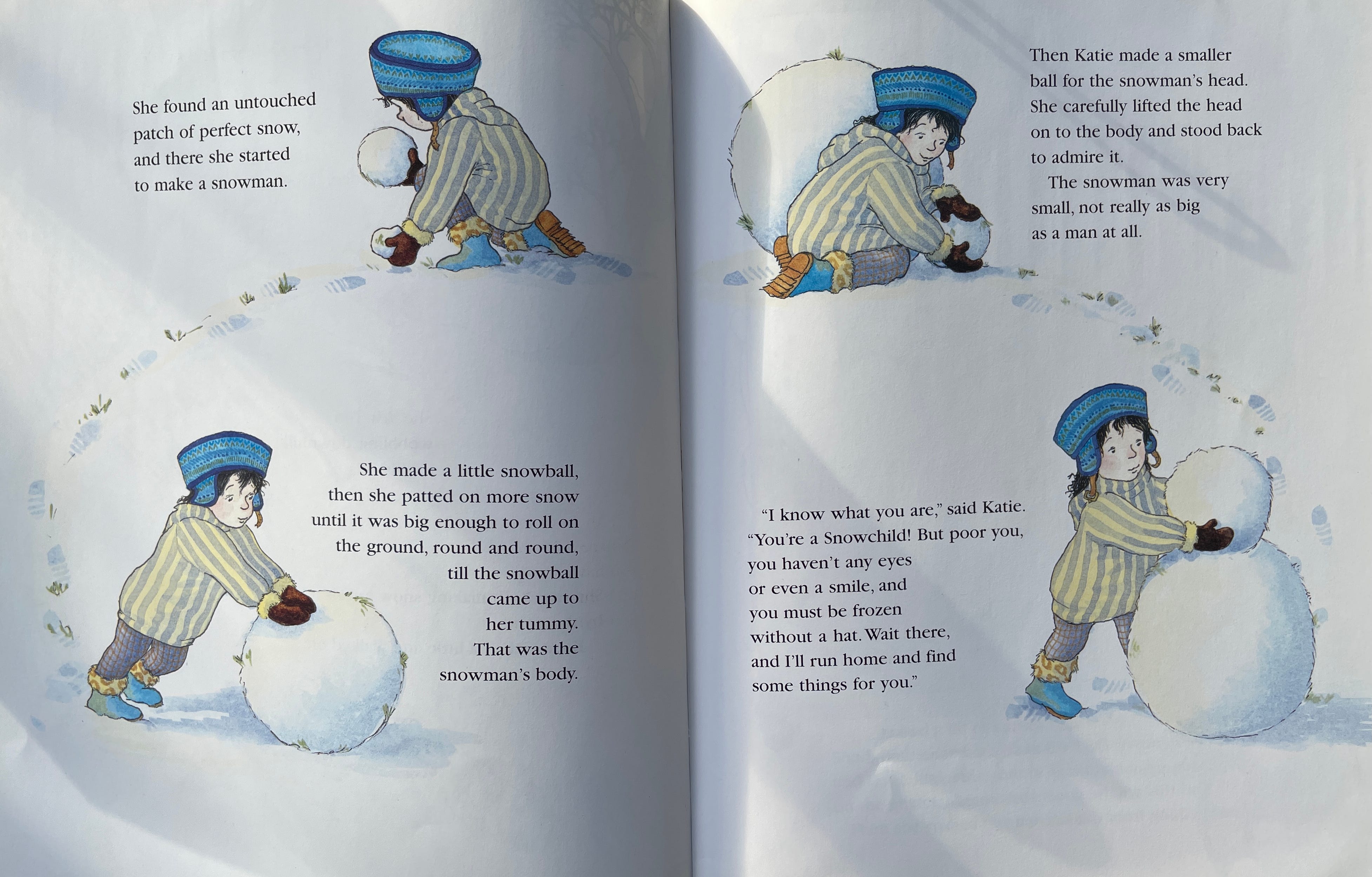 I miss that studio enormously. There was a collapsing Chesterfield sofa across from the photographer’s sink. I would tuck my infant daughter in her little baby basket on that sofa, tiptoe across the studio and get on with whatever book I was working on until she woke up and demanded my breast. My daughter, the tiny infant whose pregnancy coincided with the final untangling of my marriage. A story for another time. Instead, let’s recall the soft quietness of that studio, the windows out to the wild garden, the table with my brand new Apple Macintosh computer displaying its glorious flying- toasters-in-an-aquarium screensaver ( does anyone here even know what the heck I’m talking about?) and the Snowchild artwork on my drawing board. Radio 4 Woman’s Hour playing in the background.